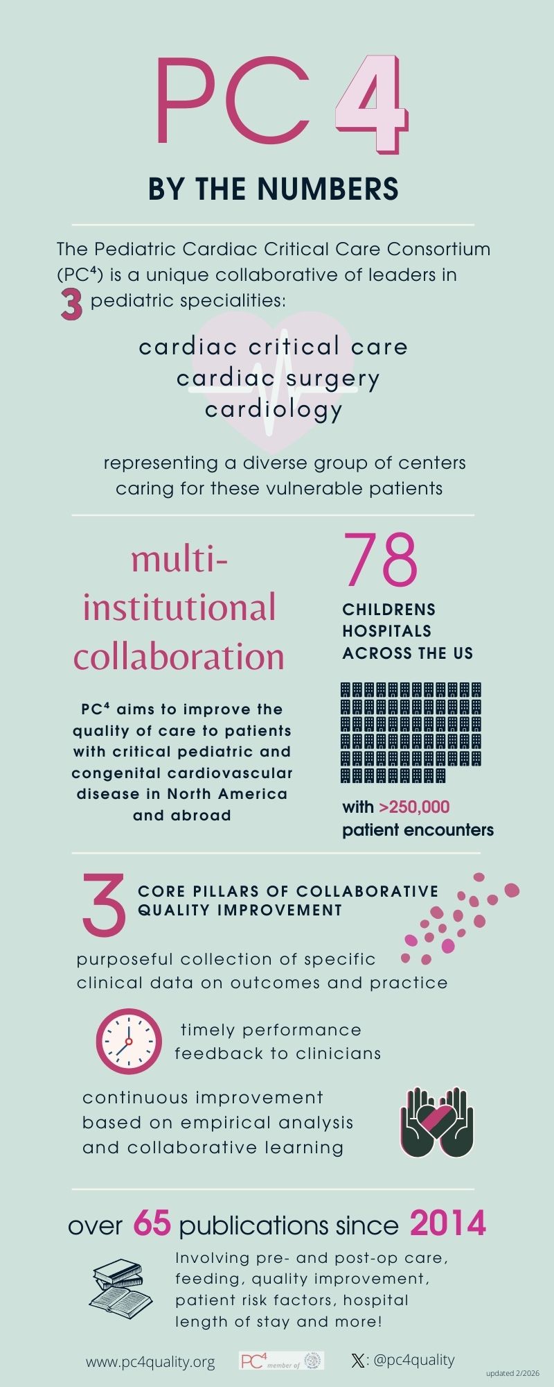 PC⁴, the pediatric cardiac critical care consortium, is a collaborative of hospitals that work together to improve outcomes for patients with critical heart disease. We share data about how